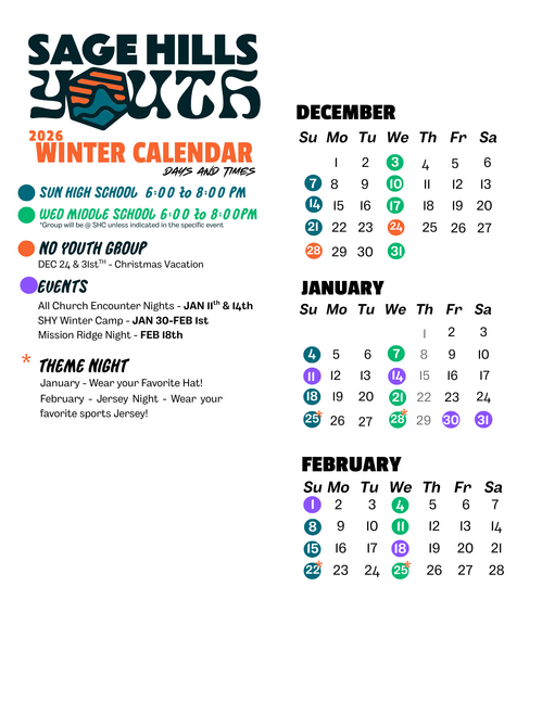 As Sage Hills Youth, we boldly step beyond our comfort zones, embracing the calling God has placed on our hearts. Together, we shine the light of Christ in our community, sharing His hope and freedom. Our mission is to inspire and equip every student to do the same, encouraging them to step out in faith, serve others with love, and bring real change to the world around them. We believe that through God’s power, each one of us can make an eternal difference, one life at a time.